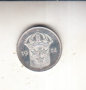 Gustaf V 25 öre 1912,01/0+,1000,Bild 1,Bild 2