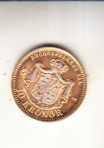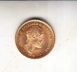 såld Oscar II guldmynt,10 kronor 1874 på 73,01/0,7000,,Bild 1,Bild 2