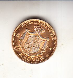 såld Guldmynt Oscar II 10 kronor 1877,1+/01,9000,Bild 1,Bild 2