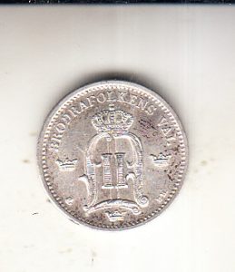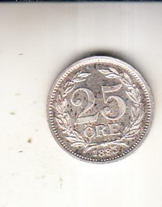 Oscar II 25 öre 1883 lång text,ca 0,3000,Bild 1,Bild 2