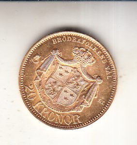 såld 20 kronor guldmynt 1878/1877,1+/01,7000,Bild 1,Bild 2,Bild 3