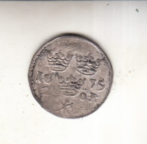 Karl XI 2 öre silvermynt Landskrona 1675,1/1+,3900,Bild 1,Bild 2