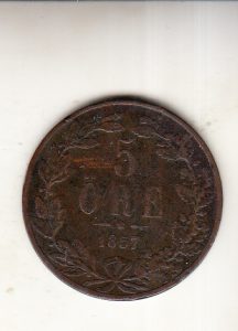 Oscar I 5 öre 1857 båg 5,1/1?,250,Bild 1,Bild 2